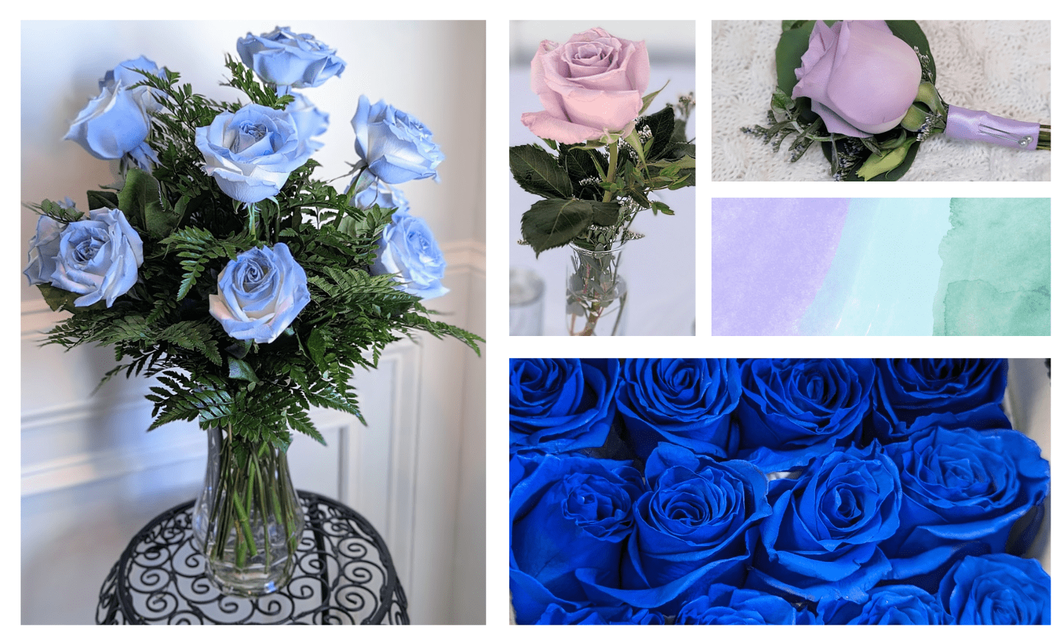 Blue- Blue roses symbolize mystery and uniqueness.